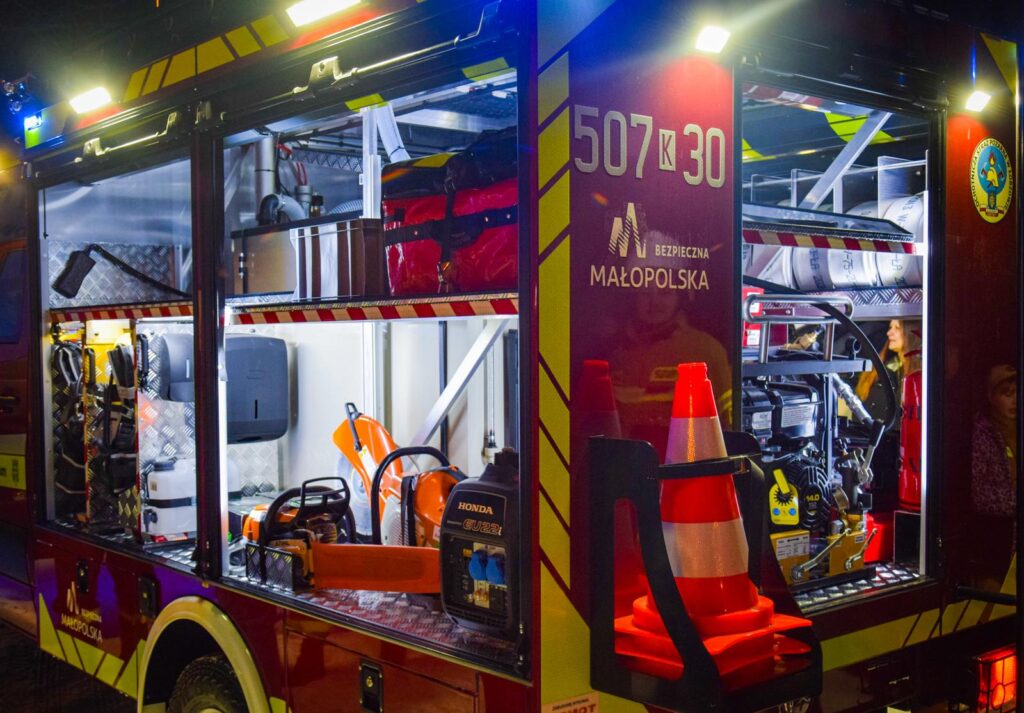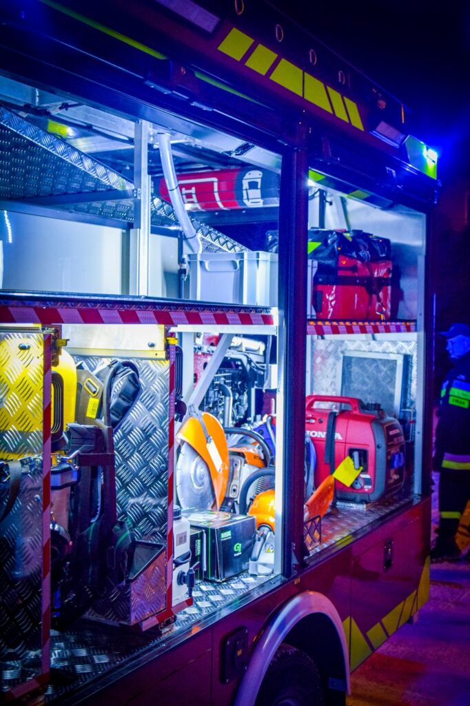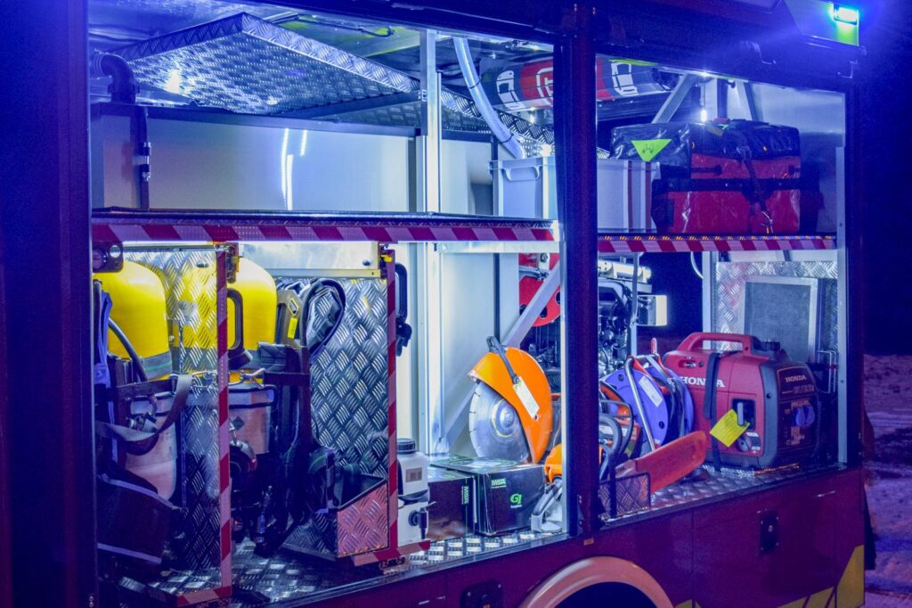 Ponadto poza standardowym wyposażeniem ratowniczo-gaśniczym ma także linię szybkiego natarcia, maszt oświetleniowy w technologii LED, dodatkowe oświetlenie pola pracy, torbę R1, agregat prądotwórczy, przecinarkę do stali i betonu itd.