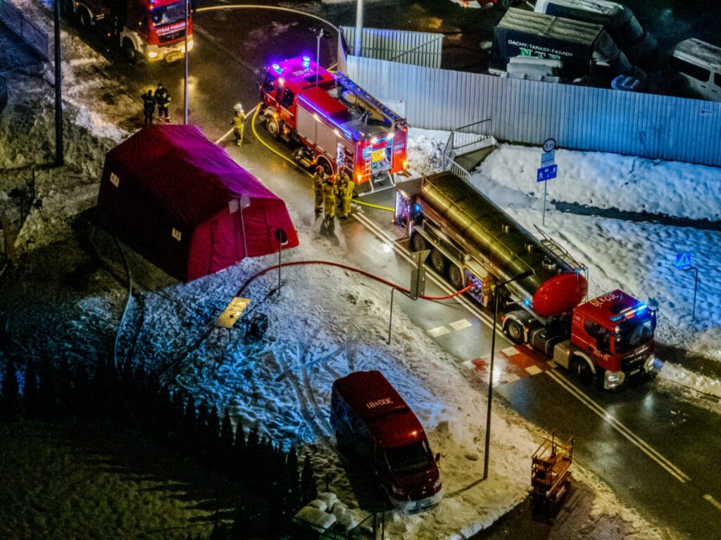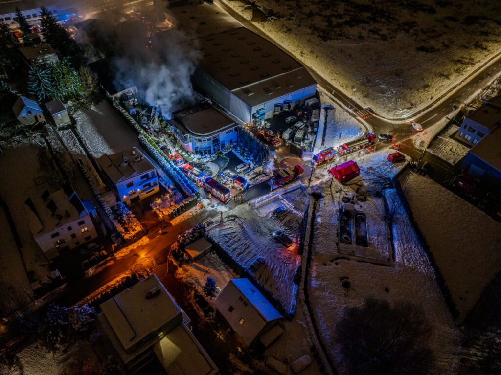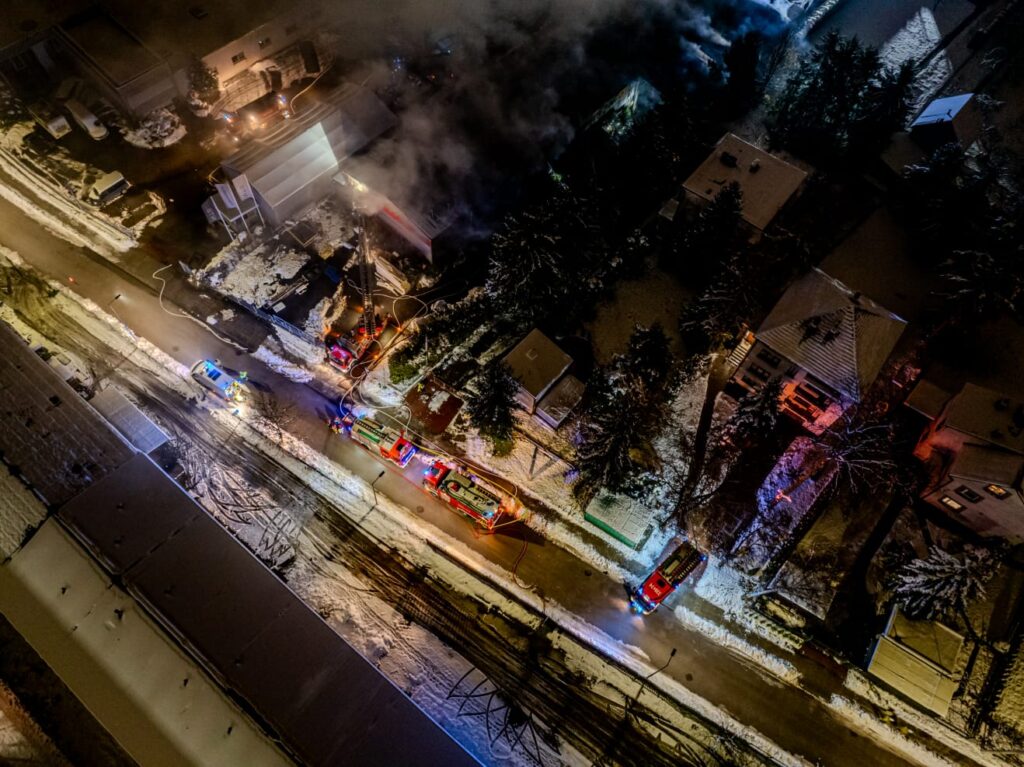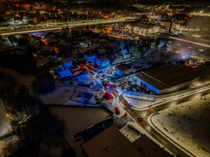 Pożar magazynu w Skawinie ! – poniedziałkowa akcja służb ratowniczych