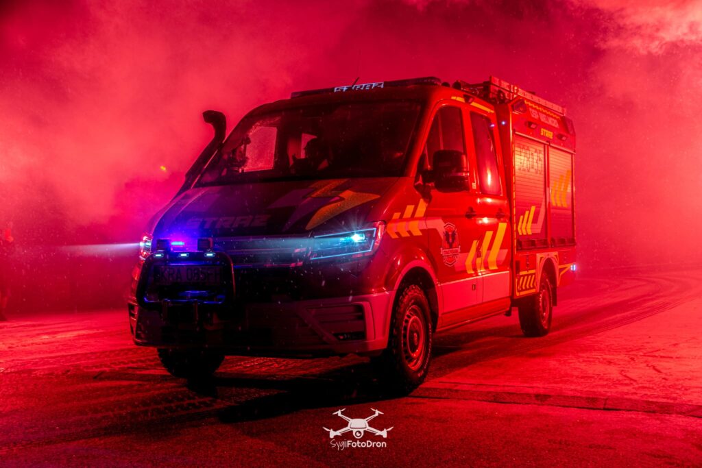 Samochód marki Volkswagen zabudowała firma FHUP Perfekt. Model samochodu to Crafter 35 w konfiguracji 4×4 z napędem stałym oraz blokadą tylnego mostu. Auto posiada silnik o mocy 177 KM a także lifting zawieszenia które pozwala na lepsze warunki jazdy w trudnym terenie. Na pokładzie znalazł się zbiornik na wodę o pojemności 300 litrów oraz 30 litrowy zbiornik na środek pianotwórczy. Poza standardowym wyposażeniem samochodu ratowniczego został także zamontowany system piany sprężonej CAFS a także wyciągarka elektryczna.