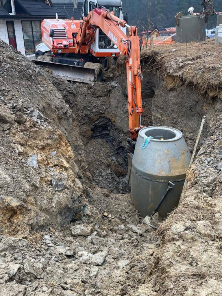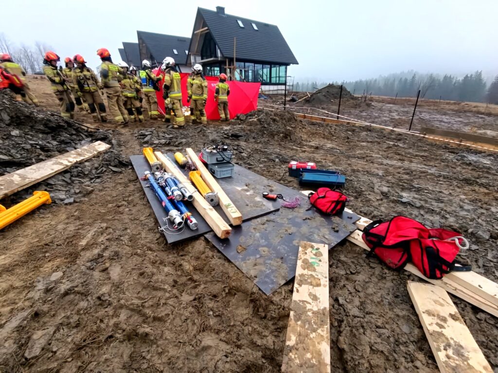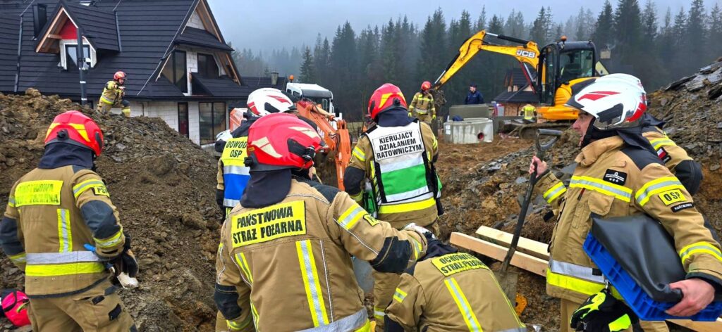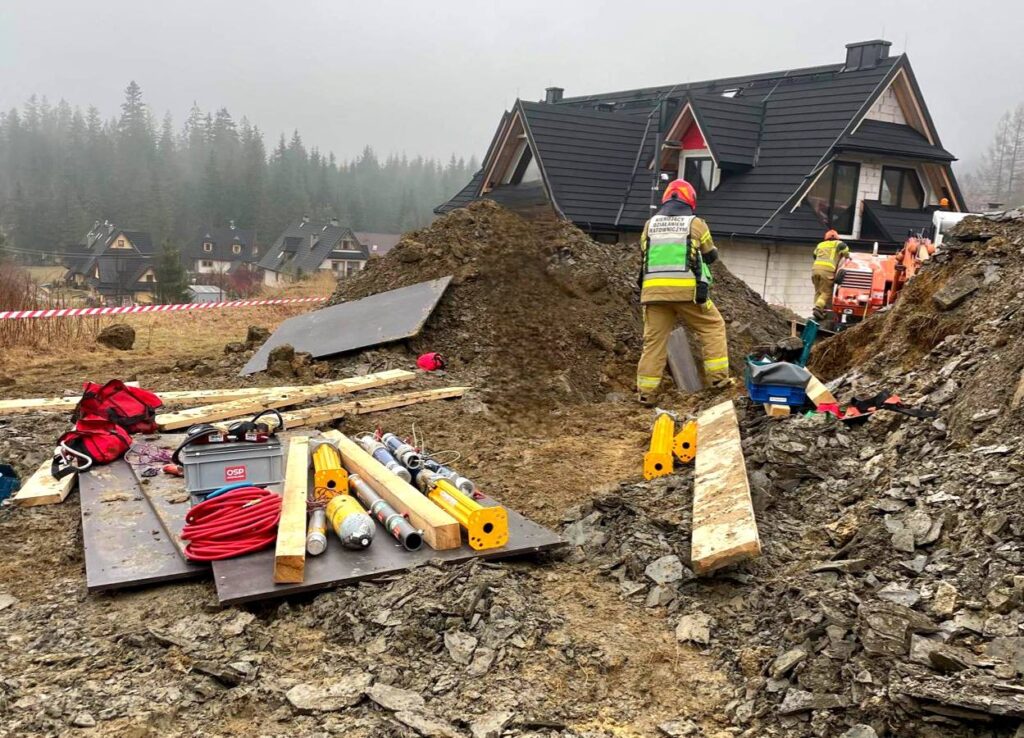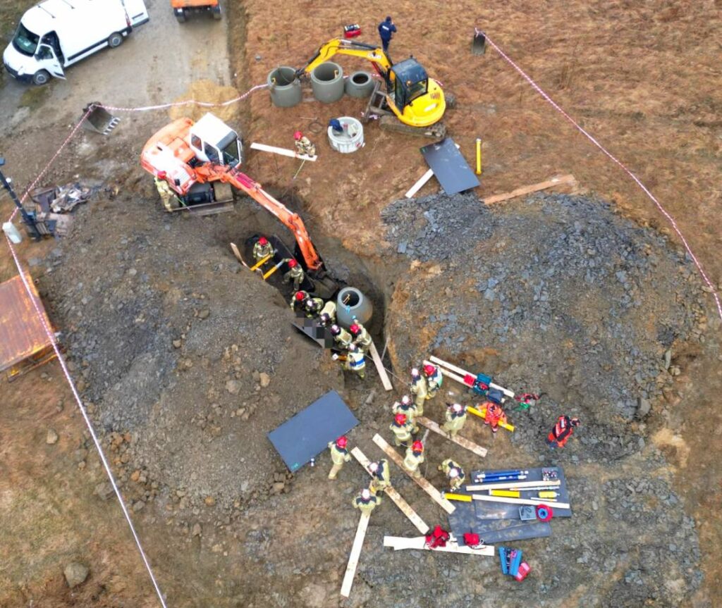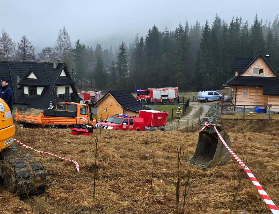 Dzisiejszego poranka kilka minut po godzinie 9 do służb wpłynęło zgłoszenie o mężczyźnie który został przysypany w wykopie na głębokości (ok 4m), na miejsce niezwłocznie skierowano zastępy z OSP Kościelisko, PSP Zakopane, Zespoły Ratownictwa Medycznego z Zakopanego, Policję Zakopane oraz Straż Gminną z Kościeliska. Jak relacjonuje na swojej stronie Osp Kościelisko – Po przybyciu na miejsce zdarzenia ustalono, że doszło do całkowitego przysypania mężczyzny zwałami ziemi, a pozostali pracownicy podejmowali już próby dostania się do poszkodowanego. Pierwsze działania polegały na zabezpieczeniu miejsca zdarzenia, odsunięciu od wykopu osób postronnych oraz przeniesieniu z samochodów niezbędnego wyposażenia. Poszkodowaną osobę udało się wydobyć z wykopu przez strażaków, niestety ZRM stwierdził zgon – (mężczyzna wiek ok. 43 l)